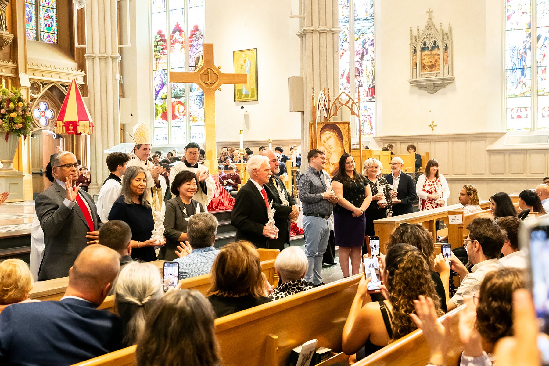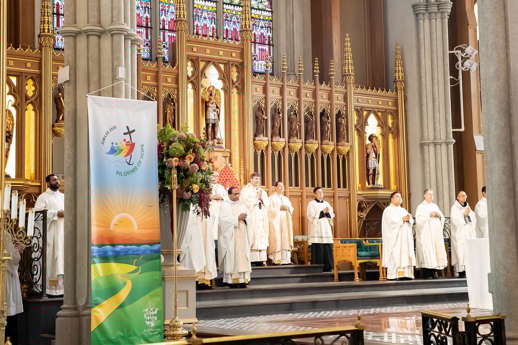 On Sunday, September 28, 2025, Frank Cardinal Leo, Metropolitan Archbishop of Toronto, presided at the noon Mass at St. Michael’s Cathedral Basilica in celebration of the Solemnity of Saint Michael. The 1,200 faithful in attendance included recipients of the 2025 Saint Michael Award, recognizing distinguished, faithful service and outstanding witness throughout the Archdiocese of Toronto. Once again this year, Catholics across the archdiocese also participated in a Novena to Saint Michael in the days leading up to the solemnity.